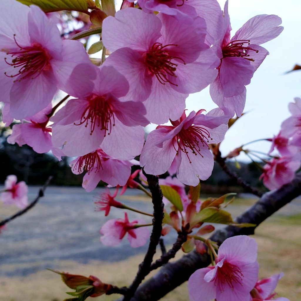 毎年、桜まつりで賑わう登茂山公園では早咲きの河津桜がひっそり満開を迎えていました。