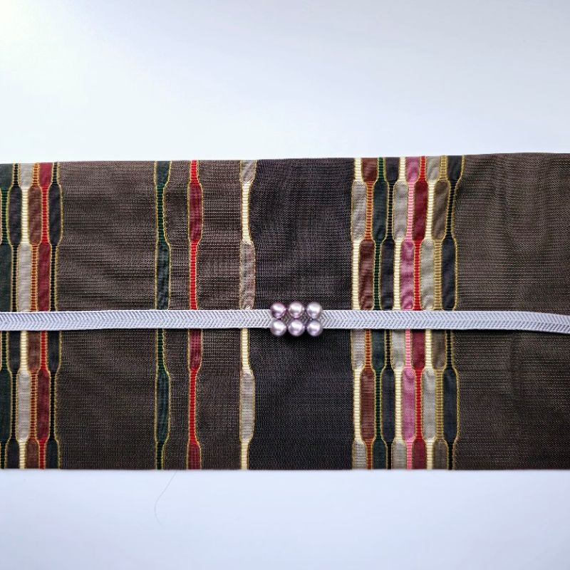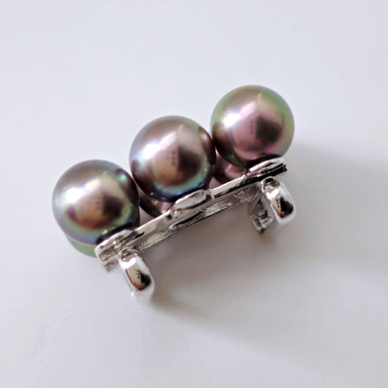 際立つ存在感、アコヤグレーパールの帯留 帯どめ(国産アコヤ真珠8.5mm 6個 付グレー) 在庫状態 : 在庫有り ¥77,000(税込) 数量 帯どめ(国産アコヤ真珠8.5mm 6個 付グレー) (obidome26) 品 質: 国産アコヤ真珠 8.5㎜ 6個付 素 材: SV サイズ: 18㎜×26㎜ 三分紐 二部紐 帯締めに通して帯の中心を華やかに飾る、着物のための唯一のジュエリー、帯留。飾りのないシンプルなデザイン。大粒のグレーに赤みの光沢が放つアコヤ真珠を整然と並べた重厚な存在感。上質で洗練されたこだわりの逸品。