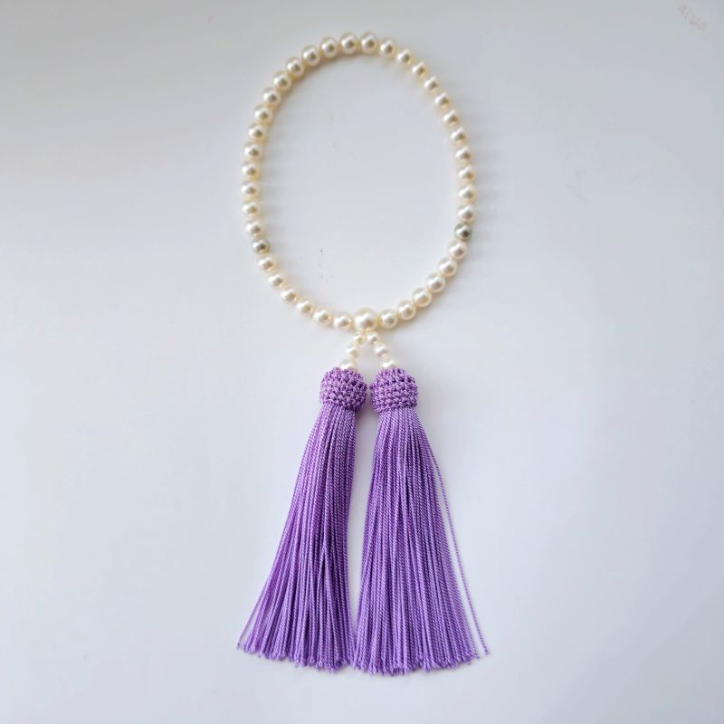 悲しみのお席は、故人に対して敬意をもって参列したいもの 。黒一色の喪服に優しさを添える上質パールの控えめな色合い のお念珠をご準備くださいませ。